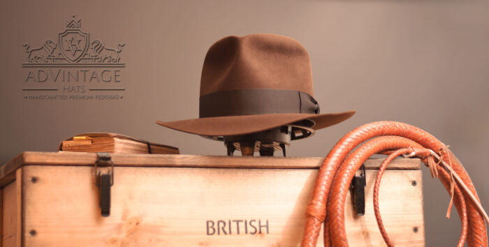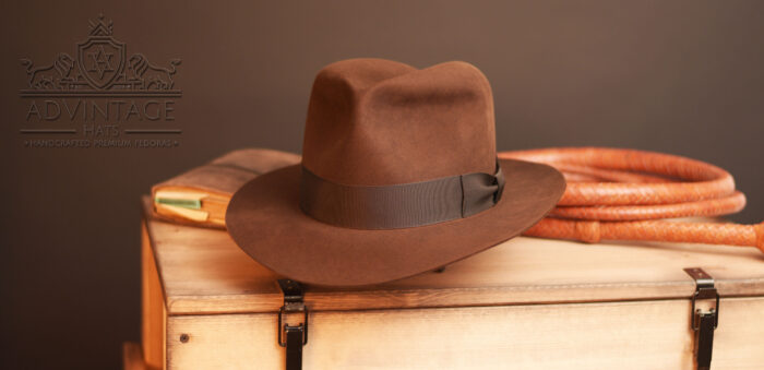 Ein CS Hero Fedora Hut, handgefertigt auf den original Filmblöcken aus 100% bestem portugiesischen Biberfilz, mit 38mm breitem, schwarz-braunem Grosgrain-Hutband für Marcello aus Italien